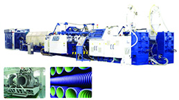 PE-PVC 單壁波紋管生產(chǎn)線,通過齒輪傳動(dòng)模塊,模板串水冷卻,制...