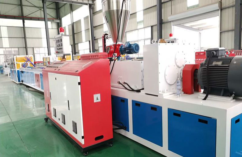 PVC木塑共擠(發(fā)泡)異型材生產(chǎn)線 主機(jī)采用變頻調(diào)速,螺桿芯部調(diào)溫的錐形雙螺桿擠出機(jī)。擠出量可提高 50%,節(jié)電 20%-30%。硬齒面減速機(jī)可連續(xù)長時(shí)間運(yùn)轉(zhuǎn)無故障。牽引切割融為一體,運(yùn)轉(zhuǎn)平穩(wěn),使用壽命長。在此設(shè)備的基礎(chǔ)上,增加一套鋼襯輸送裝置,更換仿木發(fā)泡型材專用模具也可生產(chǎn)鋼塑型材。該制品與普通門窗相比,具有明顯的高強(qiáng)度-高保溫性-高氣密性等特點(diǎn)且易組裝,不需專用的塑焊-清角設(shè)備,可在施工現(xiàn)場操作,為推廣普及帶來極大的便利。優(yōu)化的螺桿設(shè)計(jì)使用使剪切小,不易剪斷木質(zhì)纖維,能使物料在機(jī)內(nèi)停留時(shí)間均勻。木粉及植物纖維添加量高(最高可達(dá) 50-75%);設(shè)備適應(yīng)能力強(qiáng).