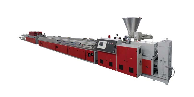 木塑擠出生產(chǎn)線:采用特殊設(shè)計的螺桿機筒、模具及擠出機加工生產(chǎn)工藝生產(chǎn)木塑產(chǎn)品。公司產(chǎn)品系列:木塑一步法厚板設(shè)備;木塑一步法異型材設(shè)備;木塑一步法裝飾材設(shè)備;木塑造粒設(shè)備;各種木塑模具。擠出機單機兩級混合直接擠出,也可造粒后兩步法擠出,省電省空間,具有產(chǎn)量高,擠出壓力穩(wěn)定,預(yù)熱加料機置于主機頂部,先抽出大部分木粉中殘留的水份,使主機加料段更加充實;塑化混煉效果好等特點。優(yōu)化的螺桿設(shè)計使用使剪切小,不易剪斷木質(zhì)纖維,能使物料在機內(nèi)停留時間均勻。螺桿機筒采用雙金屬處理,耐磨耐腐蝕,使用壽命大大延長。該生產(chǎn)線能生產(chǎn)PE、PP或PVC木塑異型材制品,主要用于托盤,包裝箱板,地板,戶外裝飾材料等,用途十分廣泛。木粉及植物纖維添加量高(最高可達50-75%);設(shè)備適應(yīng)能力強,可同時加工PP、PE、ABS、PS等。