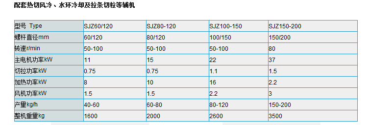 適合PE、EVA、PVC廢膜塊及PE、PVC、ABS、PP配料造粒。