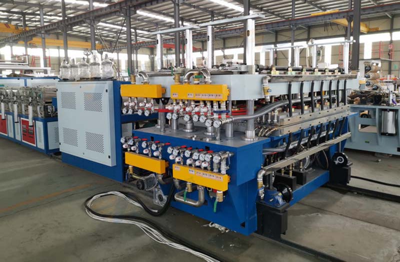 PP中空墊板瓶托板設(shè)備主要特點(diǎn),擠出機(jī)減速機(jī)與電機(jī)通過(guò)步軸器聯(lián)接,在生產(chǎn)過(guò)程中擠出機(jī)出量穩(wěn)定,沒(méi)有打滑產(chǎn)生的供料不穩(wěn)定的現(xiàn)象.配備雙工位不停機(jī)液壓換網(wǎng)器或4工位液壓換網(wǎng)器.冷卻定型平臺(tái)為獨(dú)立研發(fā),產(chǎn)量高,冷卻速度快,可達(dá)12米每分鐘.牽引機(jī)全部使用可調(diào)氣缸,生產(chǎn)每平方米180-200克產(chǎn)品時(shí)可調(diào)節(jié)雙輥之間的間距.
